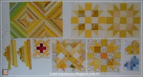 Foram poucos blocos,  mas as coleções estão aumentando, lembrando que ainda tenho até a próxima Segunda-Feira para usar retalhos amarelos. No mais é aguardar que Angela divulgue com qual cor deveremos trabalhas durante o mês de Maio.